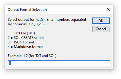 - Select output formats (TXT, SQL, JSON, Markdown)